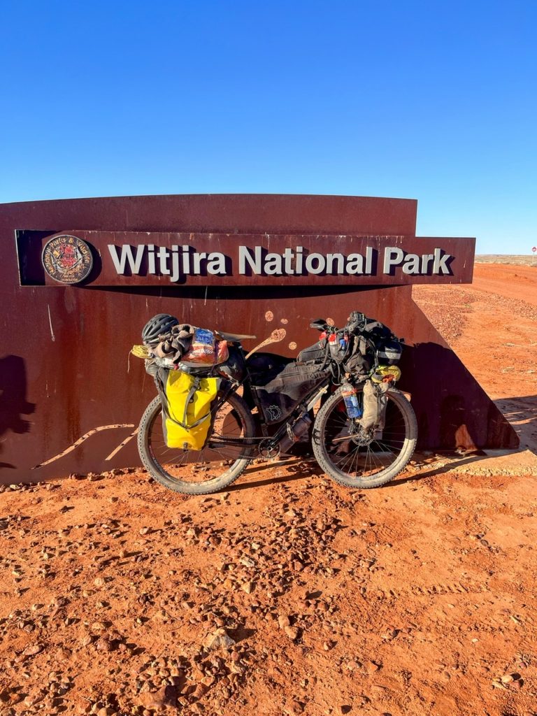 The wind blew across me for a while but as I turned north it was behind me once more. My excitement grew as I hit the entrance to the Witjira National Park.