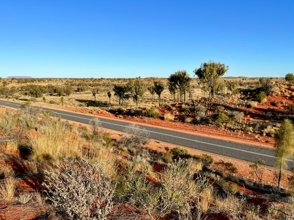 I also noticed the rich red dirt of the Red Centre lining the banks of the road for the first time. Amazing!