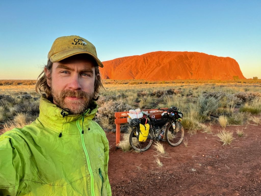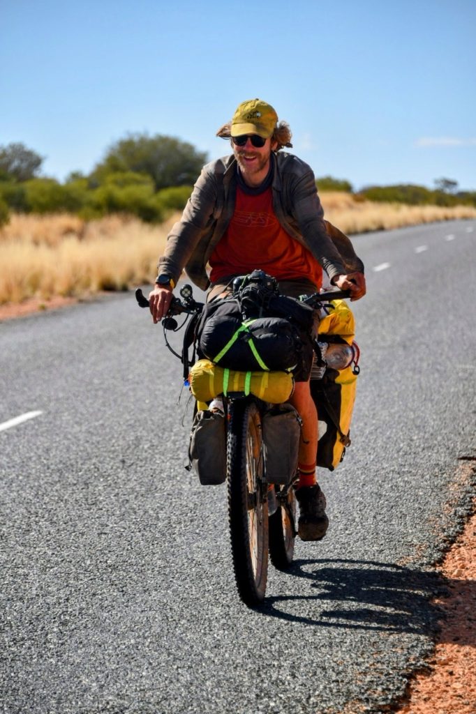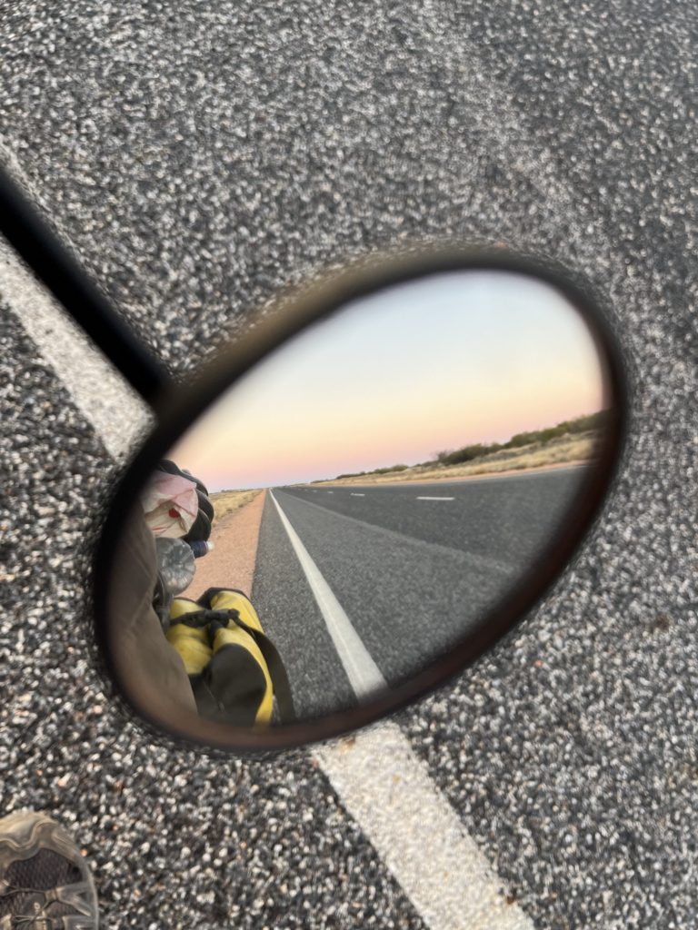The next morning I started the easier kilometres of the bitumen. My bum was happy and I was looking forward to finally setting eyes on the natural and spiritual wonders that are Uluṟu and Kata Juta. A generous fellow cycle tourist working at the roadhouse gave me some vegetables and fruit for the road. Thanks Theo – you’re a champ!