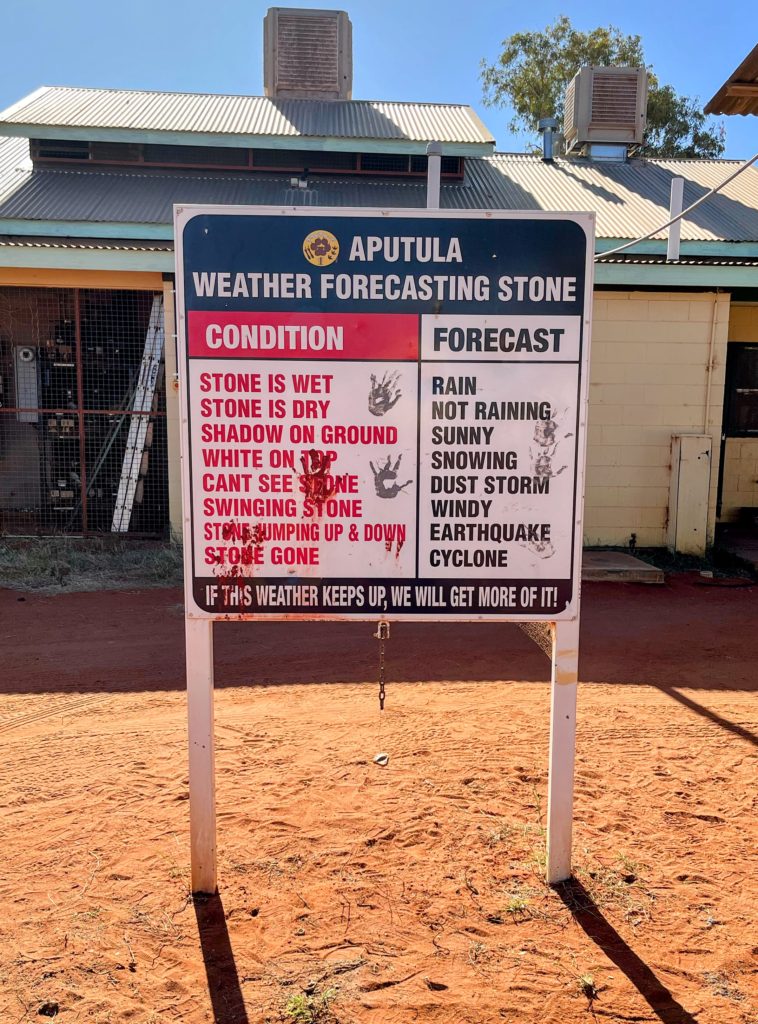 I was waved over by a friendly couple relaxing in the sun in front of their house. As it turns out Andy & Amanda were interim managers of the store – providing holiday relief to the usual managers. We had a good yarn and I discovered that the town was empty because most folk had travelled to a football festival. I found out that Aussie Rules football (AFL) is quite popular in the Outback NT and I later noticed many people wearing jerseys from the professional and local footy teams. Andy & Amanda were kind enough to offer me some fresh vegetables and a can of coke from their pantry. Thanks folks!