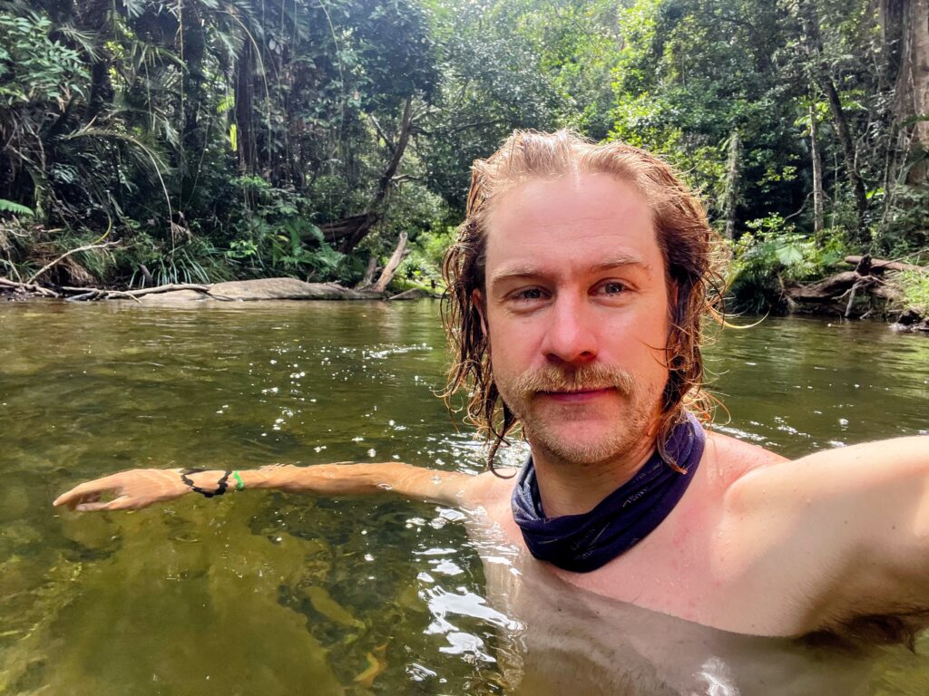 I couldn’t help but be blown away by the colours and sounds of the tropical rainforest. On my second day I opted to take a slightly overgrown track and found myself constantly getting snared by the infamous ‘wait-a while vines’. The path eventually turned into a wall of dense foliage and it took a good deal of scouting to find a path around it. I was however rewarded for my efforts coming across a crystal clear stream, deep enough for a swim and the perfect spot to escape the heat of the day.