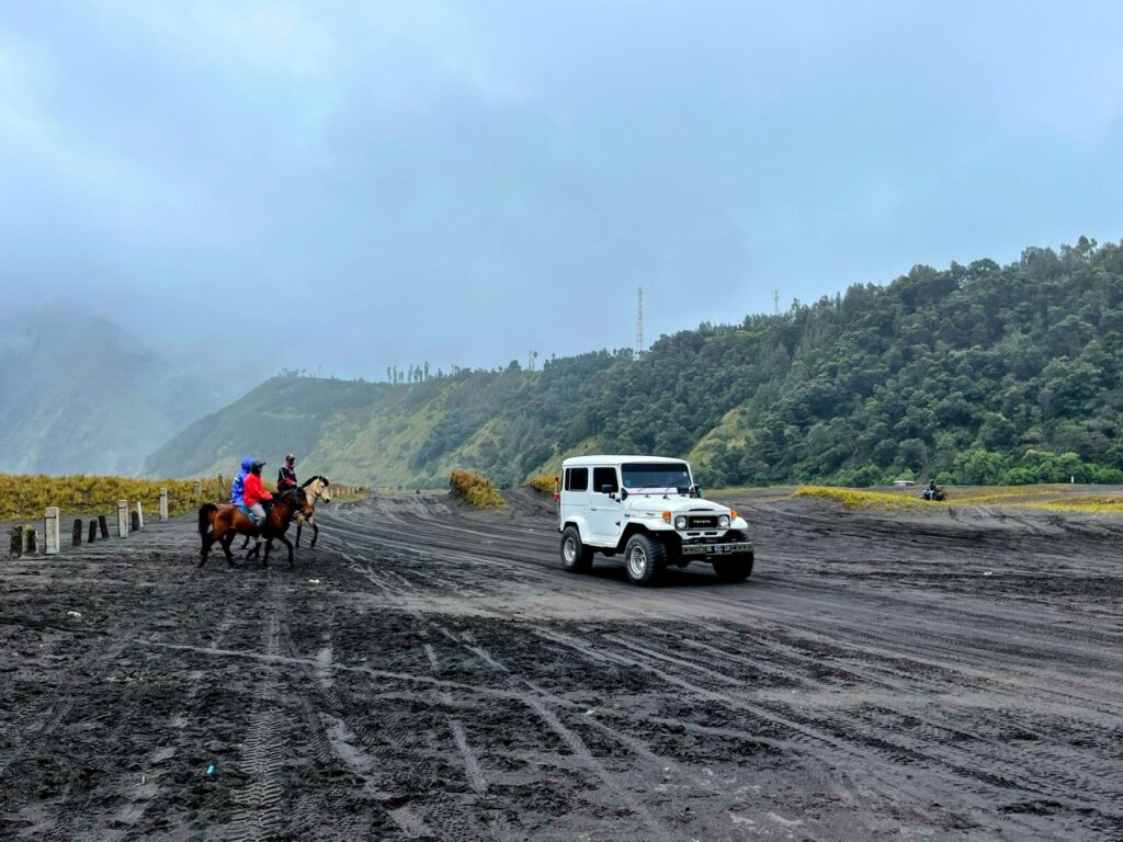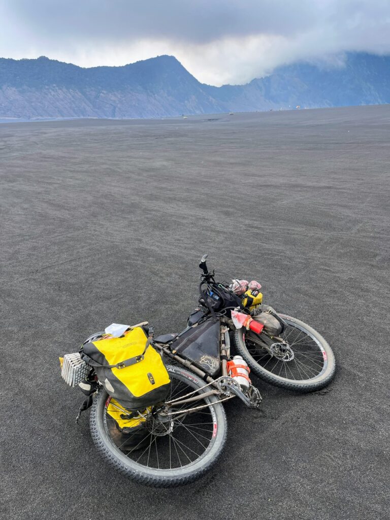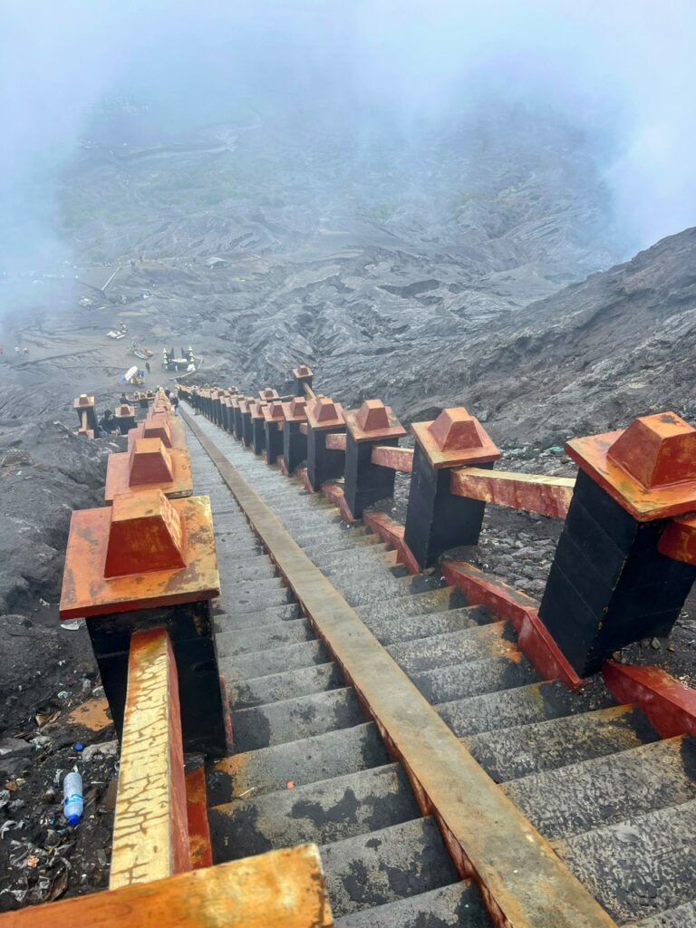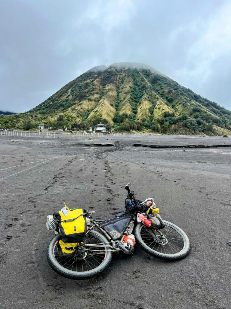 I headed back down to my bike, obliging a few selfie requests along the way. Unfortunately the clouds prevented me from seeing the towering peak of Semeru in the distance, another active volcano that erupted in 2021 killing 57 people and causing a lot of destruction.