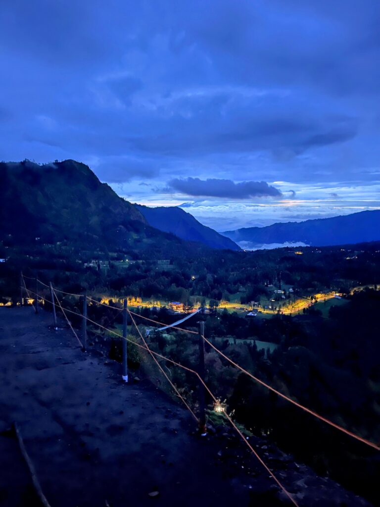 I took many breaks this time, having learnt from my previous effort on Kawa Ijen. Thankfully the gradients weren’t quite as hard but still tough going. Once again however, the steepest part of the road awaited me near the top. It was now the early evening and a cloudy sky meant it was getting dark.