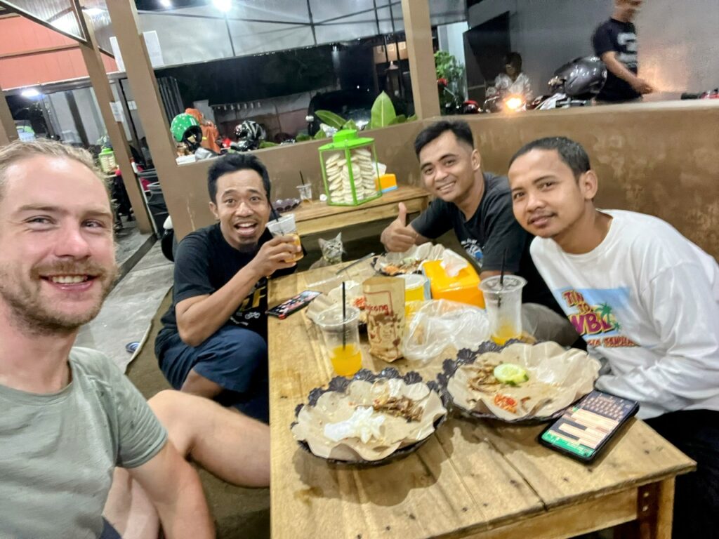 That night I stayed with a guy whose nickname was Bopo Edy. We enjoyed many cups of tea, coffee and bowls of bakso (Indonesian meatball soup). Edy was super excited to have me, he had many questions and even gave me a cycling jersey. Throughout the evening several guests came and went.